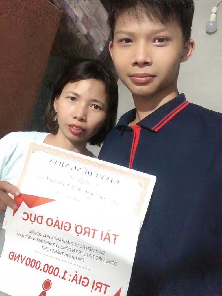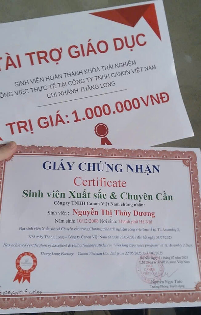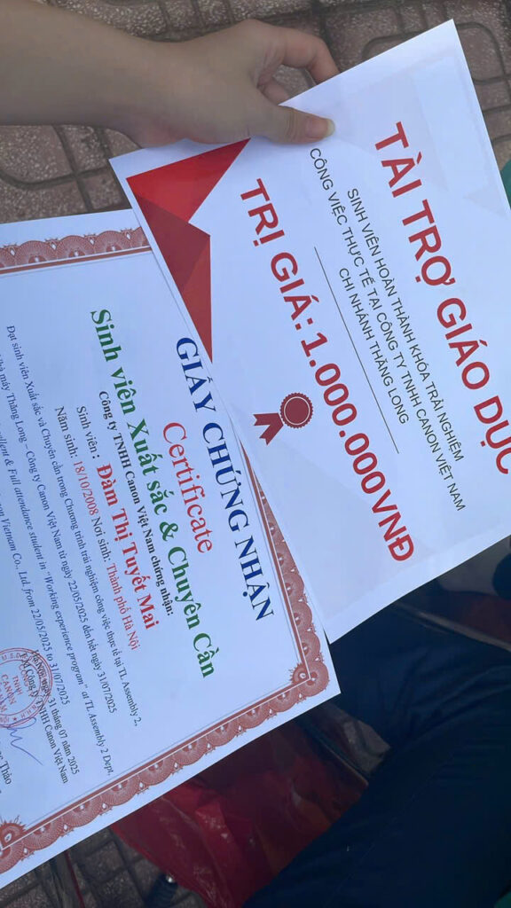 Niềm vui vỡ òa khi HSSV nhận được gói trợ cấp giáo dục và học bổng gần 8 triệu đồng từ Tập đoàn Canon Việt Nam và Nhà trường. Tin nhắn báo Ting-Ting về tài khoản , các em háo hức chạy về khoe với mẹ – món quà ý nghĩa đầu tiên từ chính sức cống hiến, trí tuệ và nỗ lực của mỗi HSSV.